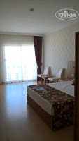 Нас поселили на 4 этаже с видом на соседний отель, поле с арбузами и море вдалеке. У нас был семейный номер с двухъярусной кроватью. Хороший просторный номер, все работает, чисто.