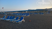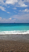 Очень просторный, много лежаков, можно найти свободные в любое время. Берег галька и песок, вход в море - камни. Несколько дней штормило и детям заходить в море было тяжело.