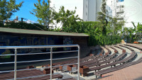Её нет, все очень плотно и тесно. Бассейны, горки, немного травы с лежаками и все...