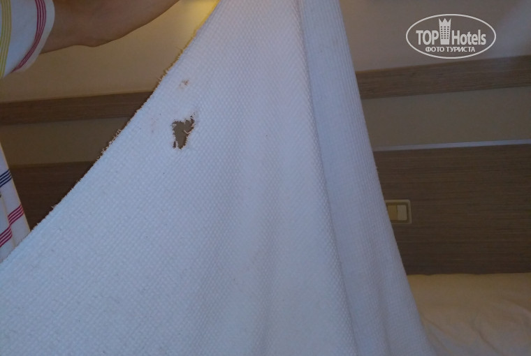 Про номера. Они, конечно двухкомнатные, но тесные и ужасно неудобные. Мебель вся допотопная. Диваны и кровати все перекошенные и продавленные. Простыни и одеяла с дырами. Даже не верилось, что всё это в четырёх-звёздном отеле. Лестница постоянно грязная. На двух первых этажах не горел свет, и никому до этого не было ни какого дела.