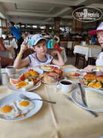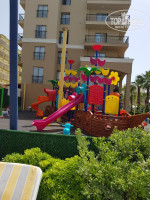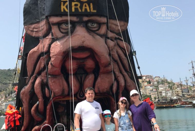 Отдыхали в этом отеле с семьёй и друзьями. Заселение было в 14.00 раньше не могли т.к номер убирался. Очень понравилось что нам дали номера с друзьями на одном этаже. Номер просторный 3х комнатный, было 5 спальных мест, 2 балкона. В номере чисто, каждый день у нас убирались. Единственное что в номере был везде кафель и полы из за этого были холодные, приходилось ходить в обуви. В номере есиь чайник, заварка, сахар. Что тоже очень важно, когда едешь с детьми. Еда там на любой вкус, можно накормить даже привередливого ребёнка. А выпечка просто восхитительна и разнообразна, отдельное спасибо кондитерам. Устоять не возможно. В течении дня на территории отеля всегда можно найти где поесть. Если столовая закрылась, открывается бар на пляже. Голодными точно не останетесь. Территория ухоженная есть места где детям можно играть. Это батуты, качели, горка и ещё отдельно стоящая детская площадка мо специальным покрытием. Мы там гуляли вечером. Дети очень любили вечером смотреть мультики с 20.00 до 21.00, а потом начинались развлечения для них с аниматорами. На пляже есть тоде небольшая площадка для детей. Ходили на рынок до него минут 30 идти. Можно и нужно торговаться, хорошо уступают. Экскурсию мы брали у Саши. Это как выходите с отеля и налево минуиы 3 идти. Она сама выходит к Вам, мимо не пройдёте. У неё дешевле. Ездили на пирстском корабле, дети были в восторге, особенно понравилась пенная вечеринка там. Даже когда плыли увидели проплывающую мимо черепаху. Восторг.