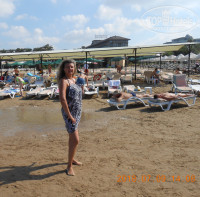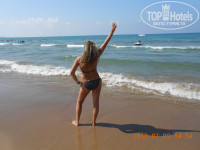 Если до заселения в номер планировали, принять душ и немного отдохнуть, все же бессонная ночь сказывалась на нашем состоянии. Ополоснувшись, усталость и сон, как рукой сняло! Переоделись в пляжную одежду, и побежали, сначала занырнули в бассейн, после дочка побежала на водные горки, а уж потом так же бегом на пляж к морю. У ворот автобус, который возит до пляжа, приятный улыбающийся шофер: - «Хелоо, пляж? Ок?» и рукой показывает на дверь автобуса. Конечно, ОК! Неудобно мокрые, с бассейна ведь, не садимся на сиденья. Водитель снова показывает нам, что можно сесть. Улыбаемся, стесняемся.