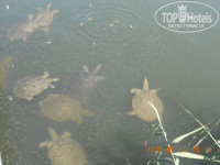 Раза три по утрам после завтрака ходили на речку, смотрели на черепах. Найти ее совсем не сложно. Если стоять лицом к морю, нужно идти вправо метров 700 – 800 вдоль по пляжной полосе. Мимо не пройдешь точно, преграждают путь камни и справа виден мостик, на котором стоит народ. Кормят рыбок и черепах. Рыбки там самых разных размеров и черепах, выплывающих за раз, насчитывали до 8 штук. Сходите обязательно, не пожалеете!