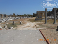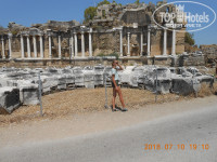 На маршрутном автобусе (стоимость 3 лиры с человека) ездили в античный Сидэ. Тоже рекомендую туда съездить! Маршрутка останавливается на параллельной улице от отеля вниз. На автобусе надпись Сидэ. Доезжаете до конечной остановки, водитель махнет рукой, куда двигаться, не промахнетесь! Упретесь сначала главный монументальный фонтан города – “Нимфеум”, потом по деревянной дорожке дойдете до старинного Амфитеатра (стоимость входа в Амфитеатр 20 лир с человека), там по месту вы определитесь сами, нужно вам идти во внутрь или нет. И обязательно спуститесь к морю к храму Аполлона. Там же находится римский акведук, строительство которого проходило во 2 веке н.э.