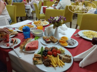 Отдыхала с дочерью и тремя внуками 15,12 и 2,5 года. Уговоры и небольшой презент не помогли и расселили нас в разные корпуса (может и действительно номеров не было, но нам было очень неудобно с одного корпуса бегать на 4 этаж в другой) Номера простенькие, но есть все необходимое, все исправно работало и претензий никаких. Уборка ежедневная, но очень поверхностная, под кроватью клубы пыли, на стене раздавленная муха от приезда до нашего отъезда.Постель и полотенца меняли, гель, шампунь добавляли. Огромный плюс- отельный гид Рашид, ежедневно находился в отеле и готов прийти на помощь по любому вопросу. Мы обращались с просьбами к нему неоднократно, т.к. в отеле практически никто из персонала не говорил по русски. Рашиду большой привет и отдельное спасибо за гостеприимство и внимательное отношение к русским туристам. Питание очень хорошее и об этом все пишут в своих отзывах, повторяться не буду, это еще один плюс!!! Алкоголь никакой не пробовали. На экскурсии не ездили, но цены в городе не на много ниже чем в отеле, мы сравнивали. Очень маленькая и очень красивая и ухоженная территория. 2 взрослых бассейна (лежаков хватает всем) 2 детских с горками, где при нас дважды брали воду на анализ. Вода в бассейнах очень чистая , хлоркой не пахнет. По вечерам концерты, каждый день разные. Аниматоры очень стараются весь день и вечер развлекать отдыхающих, но к сожалению все на немецком языке, хотя детворе языковой барьер не помеха. Пляж песчаный, территория большая, лежаков хватает, заход в море пологий, для детей вообще идеально! На пляже прекрасное кафе, где можно полноценно пообедать, выпить кофе, поесть фруктов или свежеиспеченных лепешек. На пляж можно идти разными дорогами - налево вниз и вдоль реки или вперед и направо между отелями есть дорога к морю. Ходили между отелями, т.к. от реки был какой-то неприятный болотный запах, правда 2 раза видели в ней черепах.Погода нас порадовала и вода в море была очень теплая, нам повезло! Город рядом, из отеля направо и сразу торговые ряды.Купить все можно за доллары или евро, торговаться в разумных пределах,кто любит этот процесс! В целом отдых удался!