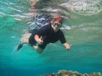 Ещё мы были 2 раза в Island View resort5*,это рядом,в этом отеле можно было утром до завтрака заплывать подальше,ещё и спасатели собирали группы любителей утренних заплывов и мы плыли в сторону отеля Savoi и иногда доплывали до конца бухты,где уже стройка,там было много разной живности,мы делали подводные фото,там тоже видели черепаху,мурены жили прямо возле второго пантона и конечно семья Наполеонов,их было 3, каждое утро они приплывали к пантону отеля.