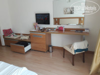Было заявлено 5дней и 4 ночи. Самолет задержали на 5 часов и оплаченный день и ночь мы провели в воздухе. И поэтому заселение было только аж на следующий день,в 5 утра. Заселили сразу. Номер был на 5 этаже,хорошая мебель,сантехника,холодильник,кондиционер, фен, балкон, вообщем все что нужно для проживания. Первый день мы почти весь проспали! За короткие 4 дня,у нас убрались 1 раз и то это было только в середине комнаты.А камешки и песок был раскидан по углам. Обещанное, ежедневное пополнение холодильника не было,сами брали воду и клали ее туда. Хотя воды было везде достаточно и в ресторане,у бассейна и на пляжу и всегда она была в холодильнике.