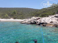 Летели с братом из Москвы компанией Нордавиа. Вылет в 5 утра из Домодедово. Понравилось то, что в самолете коленки не упирались, место было порядочно, обратно, этой же компанией летели! Все отлично, без опозданий! Как и во многих отзывах писалось, чтобы вселится, нужно дождаться вроде бы 12 или 14 часов. Время быстро пройдет, пока в бассейн сходите, с 12.30 до 14.00 можно было пообедать. Жили неделю в "бунгало", это домик в два этажа, если кто был в Тайланде, к примеру, что-то похожее там присутствует. У нас был второй этаж с мелким балконом, сначала разочаровались, спустя пару дней привыкли! Касательно сервиса, начали убираться спустя день и каждый день, на чай не оставляли, при заселении, на чай, тоже ничего не дали. При заселении кондиционер работал в одном направлении, пожаловались гиду, сделать не сделали, но поток холода стал дуть в другую сторону, этого хватило! Ездили Анексом, но бронировали через Корал за день до вылета! Так как ездили впервые в Турцию, брали пару экскурсий через гида, хотя понимали, что на улице будет дешевле, да и русскоговорящие гиды были нужны, по крайней мере для дайвинга. Экскурсии на рафтинг и дайвинг. Дайвинг советую, для первого раза сойдет, рафтинг не берите. Кто-то уже писал, но я вспомнил уже поздно. В шесть утра выезд, четыре часа на шатл басе (маршрутка) в пути в сторону Мармариса, причем почти доезжая до него, легкий завтрак на конечной. Экипировка, потом еще часа полтора на более мелкой маршрутке, русскоговорящего гида не увидите, нам более-менее повезло, на месте был от Корала, и то не особо понимал чего он там делал. Далее сплав час (будет чего вспомнить), переброска на маршрутке минут 15 и еще сплав, но это уже по ручейку и потом часа полтора Вас тянет моторка. Далее обед, переходящий в ужин, потому как время в районе 17.30 часов, и оперативный отъезд в Бодрум, еще на четыре часа. Вы выдержите?! На ужин, Вы по любому не успеваете. Валерия (гид), если читаете этот отзыв, физкультпривет, за то, что Вы лапшу навешали, что дорога занимает пару часов! На ужин не успели, на следующее утро выезд в 7.10 из отеля в аэропорт, на завтрак тоже не успевали, он с 7.30 до 10.00, ужин, на всякий случай с 19.00 до 21.00 часа, так что, ужин покупали в магазине по соседству на последние деньги, в минутах пяти пешим шагом в сторону центра. Кстати до центра Бодрума, ехать минут 20-25, если пробок не будет! Центральная улица, так сказать улица клубов, это что-то похожее на Волкинг стрит в Паттайе, только без трансов и караоке, живой музыки, только клубы и бары.