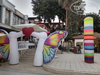 Собственно теперь про отель. Приехали в 14:30. На ресепшене встретили нас три девушки прекрасно владеющими русским языком – вручили нам карту от нашего номера 1213 без лишних проволочек и чаевых. Заполнил анкету, заплатил депозит 10$ за ключ от сейфа (потом возвращают) + по 1 $ за сутки аренды, нам сразу вручили купон на одно бесплатное пополнение мини-бара в номере, правила и концепцию отеля. На все ушло минут 5, потом все наши сумки взяли и отвели нас в наш номер в местном бунгало. Еще немаловажный момент – полотенца платные – 5$ и смена 1$. Но мы их не брали – смысла нет в них никакого. Не советую. Самый большой минус этого отеля – это никакущий вайфай в лобби и дорогой интернет в номерах. Им обязательно нужно что-то с ним делать. Ну нельзя так мучать искушенную публику привязанную к социальным сетям отсутствующим индикатором подключения к сети. Ну собственно говоря территория огромная и соединена с Justiniano Delux Resort 5*. Вы можете пользоваться абсолютно всем, кроме столовой 5* и естественно проживания в отеле. Остальное все общее. Смысла переплачивать лишние 45000 не имеет смысла. На территории ОЧЕНЬ много разнообразной растительности – пальмы, кустики, виноградники, цветы, деревья, цитрусовые много и куча всякой зелени. В общем как в саду!!! Большое разнообразие кошек всяких расцветок, которые по-моему прячутся везде где можно ))). Вся территория плавно от ресепшена к морю спускается в виде ступенек и гладких спусков для колясок с детьми. Все цветет и благоухает. Каждую ночь поливают растения, смывают грязь с тропинок. Не знаю кто там писал отзыв, что пляж не чистят – ошибаетесь. Чистят ежедневно!!! Моют дорожки, собирают мусор, расставляют лежаки. Просто некоторые туристы – ходят в ночное время на пляж тусоваться – и оставляют грязь после уборки – поэтому рано утром можно увидеть некоторое безобразие. На территории есть много бассейнов и у каждого достаточно лежаков (всегда): первый крытый и самый холодный на 0 этаже ресепшена возле спа, второй возле скрытой территории справа, где корпус «Жасмин», там же ясельный бассейн, третий бассейн основной огромный с глубиной от 100 до 160, четвертый рядом с основным – небольшой для горок, пятый бассейн большой крытый для детей с отдельными маленькими горочками, шестой бассейн основной 5* + детские ясли рядом. Короче с бассейнами проблем нет никаких. Вся движуха у основного бассейна. Большую часть времени проводили там. Возле каждого бассейна бар с напитками, так что далеко бегать не придется. На территории находятся четыре водные горки – работают на 4 часа в день. Это достаточно. Дети не выдерживали даже такого темпа. Может первые дня туда бегали на все время, а потом периодически. Спасатель всегда дежурит у горок во время их работы – так что детей можно смело отправлять. Для детишек работает мини клуб. Аниматоры очень стараются занять детей пока родители отдыхают. Мои детки ходили туда лишь один раз. Им понравилось, но у основного бассейна им интересней было, но танцевать на вечерней анимации приходили периодически. Мини клуб работает с 10-12 и с 14-17. На территории мини клуба – разные качельки и отдельная территория + они периодически занимают территорию амфитеатра в дневное время – конкурсы, батуты (два раза были) и прочее.