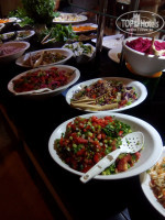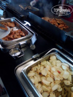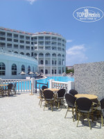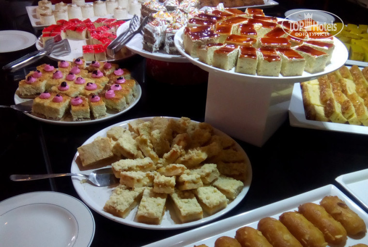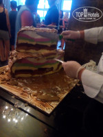 Ресторан очень просторный, несмотря на то, что номера все заселены, толпы/очереди никогда нигде нет. Питание на 5+, очень много салатов, овощей, фруктов и тортиков (просто море), мясо с утра до вечера, всегда есть курица и рыба (готовят прямо при вас на гриле), супы-пюре всегда. Острых блюд нет (кроме сыра), все приправы стоят отдельно -можно по своему вкусу сделать. Два раза в нелелю-сюрприз от отеля-на ужин огромный торт из мороженого из семи слоев (см. на фото). Блюд очень много на выбор. + Круглосуточные напитки и даже на пляже есть бар, в котором всегда холодные морсы, газировка и пиво просто рекой.