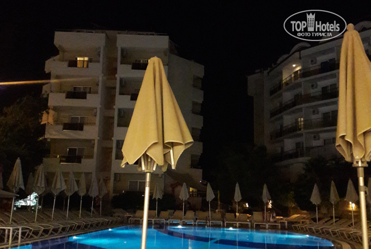 Отдыхали с женой и дочкой 8 лет 10 дней. За все время никаких претензий. Быстрое размещение в номерах, на ресепшене работает русскоговорящая девушка. Местоположение отеля очень удобное - остановка автобуса рядом, рядом большой migros, 5 минут до моря пешком. Уютная территория с закрытой обеденной зоной и бассейнам (во многих отелях столы с видом на оживленную улицу и там же бассейн).