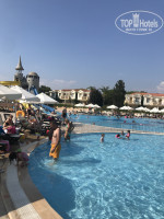ТЕРРИТОРИЯ. Огромная! Всё так и не смогли обойти. Зелень, сосны, пальмы, фонтаны!!!! Бассейны не пахнут хлоркой! На водных горках сидят спасатели! Не знаю почему люди пишут что их нет! Сама каталась и всё было под контролем. Плитка вокруг бассейнов тоже отличная! При мне ни один ребёнок не упал! Шершавая)
