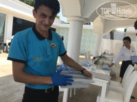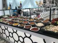 РЕСТОРАНЫ. Сразу скажу что у нас были чёрные (вип) браслеты. Мы могли посещать все рестораны и бары. Еда очень свежая! Всё есть и вкусное! Даже в конце ужина, мы приходили за полчаса до закрытия, всё было горячим! Салаты свежайшие! Никакой мешанины! Типа что вчера не доели не было! Кстати, набор блюд во всех ресторанах один и тот же, разница лишь в размерах и убранстве на столах. Шеф всегда выходил и проверял всё. Ему тоже огромное спасибо ( но про персонал отдельно напишу). Приборы, детские стулья всегда были в наличии. Чистота везде! Везде висят дезинфекторы!!!! Так что если кто-то чем-то заболевал в этом отеле, то только лишь по своей вине!!! Смотрю как дети другие, с пола поднимали и в рот, или руки даже не мыли, из игровой сразу за стол! Так это только родители не досмотрели! А отель все делает для исключения инфекций! Еду переносили и перевозили в плёнке! Приборы на стол раскладывали в перчатках! Стаканы с вином, соком держали за нижнюю часть... а не по краю. Приносили напитки быстро, по первой просьбе. Выбор огромный и еды и фруктов и напитков. Кстати, голова ни разу не болела)))) качество хорошее, не смотря на то что большинство местных напитков.