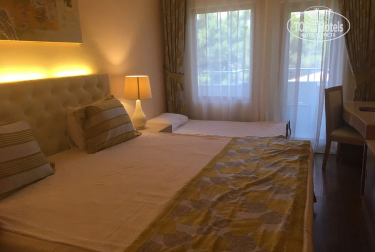 Отдыхали с 21.07.18 по 30.07.18!начитавшись отзывов ехать было страшно,но вариантов не было поэтому собрались и поехали!путевку купили за пару дней до вылета на троих вышло 121 000, включая топливный сбор.читая отзывы в tophotels решила тоже получить письмо о том,что я еду в этот отель и оставлю свой отзыв))и оооо чудо это письмо помогло нам ,так что кто хочет отдохнуть без лишних спорных моментов,то получите это письмо!теперь о самом отеле.приехали мы туда в часов 12 ,заполнили анкету и нам сказали можете оставить свои вещи возле ресепшена сходить покушать и на море ,заселение в 14.00!одели вначале оранжевые браслеты на меня и мужа,ребенку одели зелёный браслет.но тут посмотрели по компьютеру о том,что я зарегистрировалась на tophotels и всё резко переиграли нам одели черные браслеты они считаются vip и предложили сразу номер на 2 этажа основного здания,хотя мы по путевки брали эконом!нам помогли донести вещи до номера,зайдя в номер чувствуется запах сырости конечно,но кондиционер в помощь )сам номер и мебель конечно не первой свежести,кровать удобная очень.дополнительное место для ребенка была раскладушка впринципе тоже неплохая.есть маленький холодильник и попрлняется в нем мини бар раз в день сок,вода и газировка!но если в этл время у вас будет не беспокоить табличка,то никто еще раз его пополнять не придёт))уборка номера тоже каждый день,но тоже могли положить 2 полотенца всего,постель не застилают,пыль тоже через раз протирают!и чаевые тоже не особо помогают.к питанию претензий никаких нет абсолютно,кормят оч хорошо и рыба,баранина,говядина,индейка,курица,раки,мидии,креветки вообще голодными никогда не будете!официанты конечно не успевают обслуживать в час пик самый.да,с напитками проблема в плане соков их мы не пили,кроме томатного сока он из пачки и приличный.из алкоголя практически всё местное,муж нашёл алтернативу в коктелях)виски jb,пиво тоже пить можно)ну,а так вообще каждому своё)пляж я бы не сказала,что он грязный везде стоят урны,если кто-то не смог до нее дойти это уж точно не из-за того,что работники не убирают,а люди сами свинячат!проблема с лежаками,снова виноваты только сами же отдыхающие!бросят свои майки ,трусы и типа всё занято!но мы всегда находили лежак и возле бассейна и на пляже!доя черных браслетов есть отдельный пляж,но там дно из камней можно перебить все ноги .и только в последний день мы решили пройти левее на пляж другого отеля и пляж хороший и море чище)море когда мы были всегда волновалось и было грязное,но такое тёплое)самый главный вопрос ,который тревожит всех кто собирается ехать с детьми это конечно ротовирус.я ездила сама в положении и ребенку 3 года и тоже переживала об этом,но из нас никто ничем не заболел .купались мы и в бассейне каждый день и ели фрукты,руки дезенфицировали постоянно конечно.больных детей мы тоже не встречали,что кого-то увезли на скорой тоже не видели!поэтому про вирус ничего не могу сказать.в принципе Отдохнули мы хорошо