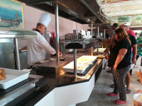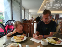 Еда отменная, особенно сладкое!Но стол на террасе поймать сложно.Правда, нам часто везло.И лишь раз мы там не ужинали.