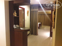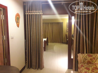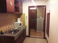 2. Номер. Нам достался огромный номер на 2 этаже (210а). Номер состоял из холла с холодильником, кухни с мойкой, микроволновкой, чайником, шкафчиками, но без посуды, небольшой комнатой отдыха со столиком с 2 стульями, диванчиком, барной стойкой с чаем, кофе, кружками и стаканами и шикарной, огромной спальней. В спальне была хорошая, больная кровать с удобным матрасом, шкаф с сейфом (бесплатно), дамский столик со стулом, комод и стол с плазменным телевизором (2-3 русских канала). Ванная вполне удобная, всегда была горячая вода, иногда стоило немного подождать, когда она пробежит, хороший фен в наличие, мыло, гель, шампунь. Так же был балкон со стульчиками и столом. Вид на бассейн и соседнее здание, нас вполне устраивал. Из панорамного окна всегда приятно было смотреть на огромные пальмы у бассейна. Одной из важных вещей было наличие 2-х кондиционеров (в комнате отдыха и в спальне). Убирались каждый день где-то в районе 12-2 часов, полотенца меняли каждый день по 3 на человека и пара пляжных, постельное меняли пару раз в неделю, всегда идеально белое, полы мыли хорошо, чай кофе пополняли по мере использования. О хорошем персонале говорит и то, что когда во время уборки начался дождь, они убрали с балкона полотенца (не отельные, наши личные) и наши вещи (купальники, футболки), что бы те не намокли.