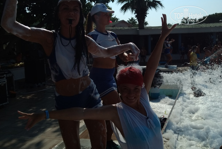 4 бассейна. Один детский лет так до 4. Есть бассейн с горками, там дети постарше находятся. Бассейн "спокойный" там нет аниматоров. Лежи, загарай, никто тебя не трогает. И бассейн активный. Рядом с ним находится пул бар. С алкогольными и безалкогольными напитками. Здесь вся жизнь!!! Ехооооу! Аниматоры - это люди, которые для вас делают шоу каждый день. Они не дают скучать. Степ, аквааэробика, утренняя гимнастика на берегу моря. Дартс, боча, танцы, конкурсы, каждый день новые эмоции - это все они! Они волшебники, профи своего дела!. Вера, Маша, Маша, Джорж, Лео, Сельдар во главе с Оскаром заслуживают 10* из 10 и каждому по Оскару за талант. Всё проходит в шуточной, игровой форме, при этом отсутствует чувство напряга. Наоборот ждёшь их, скучаешь за ними!