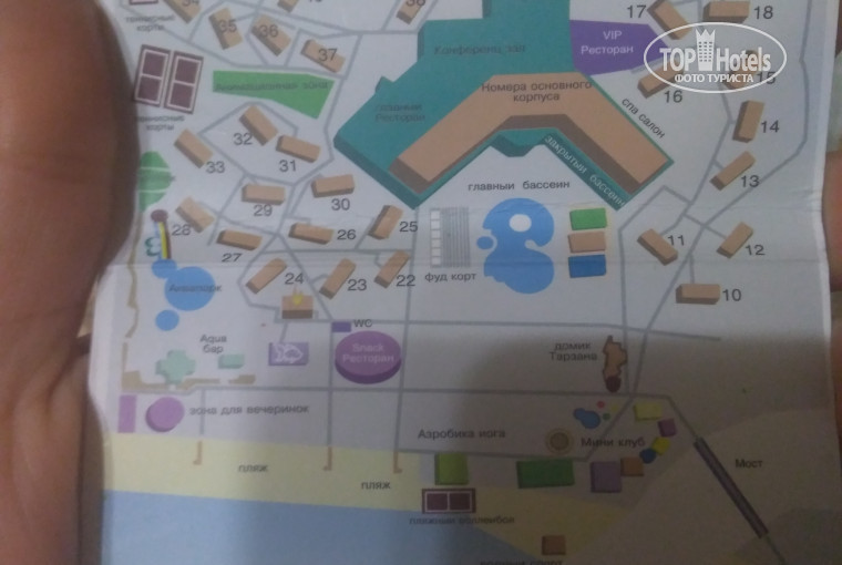 Территория отеля огромная, хорошо спланированная, много баров, туалетов очень чистых, много зелени, пальм. Есть несколько бассейнов, ну это все можно посмотреть в описании отеля, так что перечислять не буду, скажу одно-все соответсвует. Еще момент для тех, кто выбирает отель с водными горками, да еще чтобы их было много...В данном отеле их достаточно. 5 больших и 2 маленьких...Маленькие находятся на территории детского клуба, а большие ближе к мини-зоопарку. Так вот, я рассматривала отели с обязательным наличием горок, а по факту дети прокатились пару раз за весь отдых~!!! И сама я прокатилась пару раз, хотя люблю аквапарки. Просто я приверженец купания в море, и если приехали отдыхать, то плавать в море, а не сидеть в бассейнах, хотя детям там удобнее, но все мы понимаем, что бассейн не добавит им здоровья своей хлорированной водой, и т.д. Замечу, что бассейны чистые и большие были, там специальные системы очистки, так что очередной + за это отелю...и еще есть закрытый бассей...там, кстати, тоже купались люди, вот только не пойму с каких соображений...