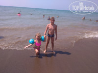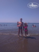 Пляж- огромный, чистый, куча лежаков и всегда есть свободные!!! Убирают постоянно, песочек с матрасов сметают, стаканы собирают, мусорные вазы опорожняют, песок накопившийся у душевых счищают, и всё это делают незаметно... много душевых, раздевалок, широкая пляжная полоса, постепенный набор глубины и достаточно неглубокое расстояние от берега для комфортного нахождения деток.. Вход в море -песок, потом немного гальки, в некоторых местах её чуть меньше, потом снова песок...во время нашего пребывания были волны, дети на них резвились...но вода у берега была естественно немного мутноватая, когда море подуспокоилось-вода стала прозрачнее...Просто имейте в виду, что самое чистое и прозрачное море будет в районе Кимера и его ближайших поселков.