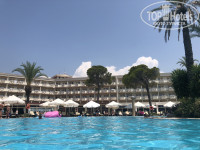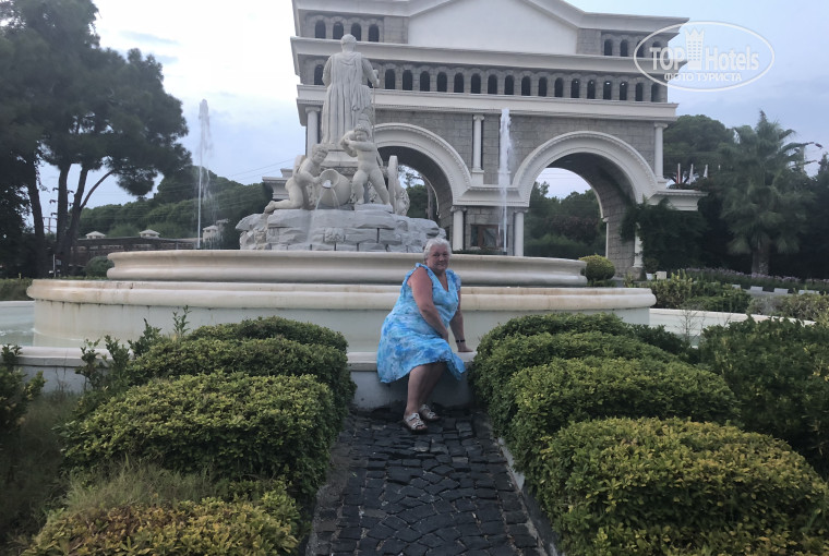Территория очень огромная и основана для детей.Очень большой и хороший детский городок,маленький бассейн и горки.Самый глубокий бассейн 1,65(вода тёплая).Есть несколько ресторанов,но советую не ходить,так как еда везде одинаковая.Если хотите посидеть,отдохнуть ,то можете сходить.Имейте ввиду,что цены в евро,ищите где можно деньги поменять в лиры,так как при отеле нет банкомата.А самое главное возьмите спрей от комаров ,так как меня покусали очень сильно.Нам пришлось купить адаптер ,который стоял 15$ при отеле.За горками есть небольшой зоопарк и теннисный корт!