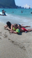 Пляж Клеопатры: идти от отеля 15 мин., пляж прекрасен, но море в этом месте штормит, за 16 дней нашего пребывания, наверно дня 4 были слабые волны, а все остальное время очень сильные. Два лежака с зонтом стоят 20 лир, но мы купили зонт за 45 лир в магазине и лежали на песке. Один раз ездили на пляж Инжекум, очень понравилось, автобусы туда останавливаются прям у отеля, проезд стоит 6 лир, ехать около 30 мин. Там нет волн, там мелко, и потрясающий воздушный мелкий песок, детям там просто отлично.