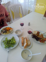 Питание - раздолье для вегетарианцев. Мясные продукты выдавались только на ужин. Один раз повар готовил шаурму, один раз рыбу и каждый вечер какая-нибудь часть курицы: крылышки на мангале, грудка с овощами, жареные голени. Хочу отметить очень вкусные супы. Каждый день разные: суп-пюре, овощные. Отсутствие мяса восполняли баклажанами в разных вариантах. Просто вкусно пожаренные, салаты с баклажанами, икра и горячее из них же. Голодными не ходили.