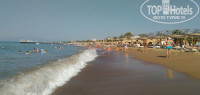 Пляж тоже большой, чистый, песок + небольшая полоса гальки. Вход в море нам понравился. В какое бы время мы не пришли всегда места на шезлонге легко находили. Море очень теплое, но мутноватое. Утром как правило спокойное, после обеда покатаетесь по волнам.