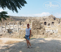 Кстати не берите экскурсию в античный Сиде и на пиратский корабль. Познакомились с семьями они ездили в эти экскурсии. Про пиратский корабль говорят трата денег. Все платно,абсолютно все?. В Сиде античный выматывает экскурсия она на целый день. Мы своим ходом ездили в античный сиде. Вся наша экскурсия обошлась в 4ре доллара это проезд туда и обратно. Не заходили в амфитеатр т.к жаба задушила платить 20 долларов за человека. Все сами обошли и посмотрели. Фото прилагаю ниже.