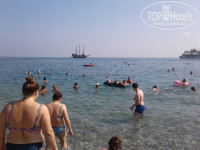 Это все общие фразы, но вот детали: приехали в 14ч. обед закончился - но нас быстро покормили, это было приятно. Надо сказать, что начинался Байрам (турки семьями приехали) и номеров почти не было. Я сразу отказалась от номера на первом этаже с балконом в столовую (спасибо за отзывы на вашем сайте). Села за стол и стала пить чай! Кстати бар с хорошим красным вином, кофе из машины - все до 21ч. свободно. Хозяин стал нервничать. Мы сидели и ждали, хотя очень хотелось на море. В ходе переговоров решили подождать хороший номер до 23ч. пока его освободят. Мы оставили вещи (чемоданы, деньги и документы) в офисе, там же переоделись и пошли на море и в бассейн (их два + джакузи), снова переодевались.
