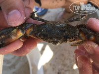 От берега идут по краям пляжа пара недостроенных пирсов, видимо потихоньку их отсыпают здоровенными валунами, так как море достаточно медленно набирает глубину. На пляже соседнего отеля есть выносной плавучий пирс, в шторм по нему ходить крайне забавное мероприятие, для некоторых сильно пугающее, и в шторм с него спасатели стараются сгонять людей, так как на его конце, глубина примерно 1,5 метра и по глупости, если нет опыта можно или что-то разбить или волной затянет под пирс. В общем экстрим на любителя. Камни на глубине, представляют собой скальный вулканический массив, довольно пористый, в крупных "пещерках" которого водятся каменные крабы, без перчаток их достать от туда почти невозможно, больно кусаются...