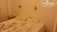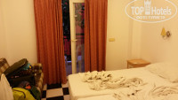Номер по нашим меркам был норм, во всяком случае гораздо просторней, чем в "дружественном отеле" особено порадовал диванчик и много шкафов для распихивания вещей (нам столько не надо, но разницу отметили). На балконе была сушилка, а вот холодильник не работал: он почему-то стоял внутри тумбочки, и нагревал воздушную прослойку между тумбочкой и стенками холодильника. Впрочем, нам сразу сказали, что холодильники тут в принципе не везде, как и сушилки. Постельное белье старое, с черными пятнами.