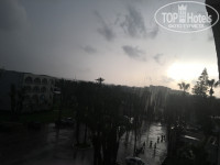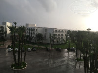 Отдыхала в отеле с мужем и ребенком 7 лет, выбрала полагаясь на предыдущие отзывы об этом отеле( большинство положительных), напишу про то, чего не увидела в отзывах, остальные почти все соответствуют действительности. Летели от Пегаса из Москвы, авиакомпания nord wind, рейсы без задержек, НО! Огромный минус- БЕЗ ПИТАНИЯ!мы не знали, лететь 4 с лишним часа, ребенок очень хотел кушать, я злилась, тк никто об этом не сказал. По прилету заселили в номер на 4 этаже комн.335 в главном корпусе, не повезло с видом, вид был на соседний корпус, первое время просыпалась от грохота автобусов приезжающих и уезжающих из отеля, и аэропорт рядом было видно как садятся и взлетают самолеты, но не громко, они нам не мешали,в номерах по противоположной стене вид прекрасный на море, было немного обидно, на ресепшене сказали что за такие номера заранее идет доплата, никто естественно менять не стал, я не настаивала. Минусы пошли с 3-его дня, погода испортилась, каждый день натягивало после обеда тучи, и ВНИМАНИЕ!!! Шли ливневые дожди с ураганным ветром!!!местные говорят такого никогда еще не было, после такой погодки море стало ужасным, сначала штормило, нанесло кучи травы, мусора и Главное медуз, я таких не видела никогда, обратите внимание, будет фото, тк искала медуз совершенно других, круглых и прощрачных, а эти еслиб мне не показали я подумала бы что это трава, жалят Очень больно, Если напророться. Последние дни из за грязи и медуз в море не купались вообще! Внимание бассейн! Ребенок катаясь с горок похоже наглотался воды, через пару дней ночью его рвало фонтаном и понос водой всю ночь, пили воду из горла одной бутылки я, ребенок и муж, заразились в общем все, муж почти неделю лежал в лежку, температура 39, уколы делали даже, в лазарет ходили лекарства на 50 евро накупила, еле еле поправились но потом от еды долго воротило. Народу было очень много, много немцев, французов и русских в одинаковом количестве, есть и из категории "тагил" которые с утра донимали на баре официантов чтоб залиться халявным алкооолем, насчет алкоголя-"ни о чем" наверно разбавляют, более менее красное вино и пиво, в дьютике надо было больше брать, пожалела об этом, купить алкоголь сложно, продается чуть ли не раз в неделю, так и не купили ничего. Еда: по началу казалось ее много, Но за 2 недели она одна и таже, надоела до чертиков, морепродукты(крабы и креветки видела 2 раза за 2 недели), рыба была: тунец, еще какая то морская, один раз дорадо за 2 недели поела. Готовят очень специфически, то специи ужасные, то очень острое, то безвкусное, ребенок не ел ничего, каждый раз было проблемой его накормить, мясо было неплохое но мясо он не ест. Сам отель неплохой, на твердую 4. Номер уютный, балкон большой, ванная со стеклянной загородкой, после мытья на полу всегда была лужа огрномная, душ еле работал ( лейка сломана наверно). Анимация нормальная но вечером было тоска зеленая, в соседних отелях тусня а у нас тишина, в общем молодежи точно будет скучно, больше для пенсионеров или для любителей спокойного отдыха в пределах отеля, тк проминада нет ксли только на такси ехать или на метро,и там не особо, только если на рынок или в магазин,ездили в Монастир на такси 15 динар, 15 минут, на рынок и в магазин.экскурсии; зоопарк фригия не плохо, ребенку понравилось кормить много кого можно, и трогать, 3 столицы(карфаген, сиди бу саид и тунис) ин