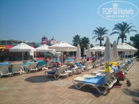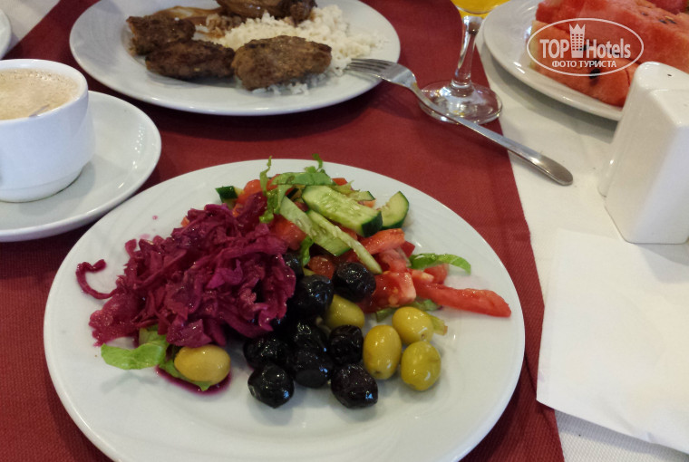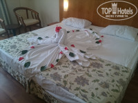 Отдыхали вдвоем с мужем в этом отеле в конце августа. Выбирали исходя из расположения, стоимости, вида отдыха. Нас все устроило в этом отеле: цена – качество. Отрицательных моментов не было. Хотя начитавшись перед поездкой отрицательных отзывов, было как-то не по себе. Но мы постарались «включить» позитив. И мы его получили на все 100%!!!! Море, солнце, отзывчивый персонал и спокойный отдых. Отель очень удобно расположен: первая береговая линия, собственный пляж, зонтики, шезлонги – все есть. Номер достаточно просторный для двоих. Кровать большая. Уборка каждый день. Берите – «Стандарт», а не «Эконом», надеюсь, не пожалеете. Питание (очень странно, что кто-то оставался голодным?!) разнообразное – курица, индейка, баранина, рыба, на мой взгляд – как и везде в Турции. Гарниры – спагетти, макароны, рис, картошка фри, печеная и несколько раз пюре. Все вряд ли перечислишь. Овощи-огурцы, помидоры, оливки, маслины, зелень, капуста и т.д., салаты, сыры, оладушки, тающие во рту. Фрукты – арбузы, дыни, персики, виноград, сливы, апельсины, яблоки, груши. Выпечка + мороженое. Из напитков ликеры, пиво, вина, крепкие напитки – джин, водка, ром, очень вкусные коктейли. Бар был заполнен в начале заезда водой, литровыми бутылками – фанта, колла и спрайт + минеральная вода. Затем пополняли каждый день бутылочками воды. Да, WI-FI и сейф платно. Для тех, кто ставил минусы за море ( просто смешно) – рекомендации : купите аквашузы и не придирайтесь хоть к морю!!!