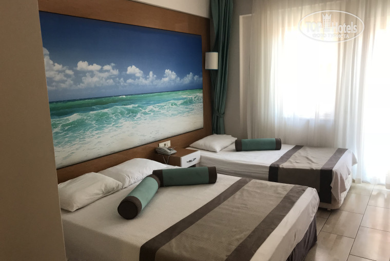 Только прилетели с отдыха. Отдыхала с дочерью(14 лет). До вылета читала много отзывов об отеле и готовилась к худшему, но получилось все наоборот. Заселили нас в корпус В, это соседний корпус от основного корпуса отеля со стареньким ремонтом и мебелью, но меня это не расстроило, потому что я не в комнату приехала, а на море. На следующий день без проблем переселили в корпус А(безо всяких доплат!) так как в нашей комнате громко щёлкал счетчик. В номере в корпусе А было чисто, светло, в наличии был холодильник, телевизор, кондиционер, большой шкаф купе, балкон со столиком и стульями. Wi-fi в отеле платный, 10 долларов на одно устройство, мы подключали, работал вполне нормально, но периодически были сбои и нам без проблем его переподключали. За время пребывания мы ни разу не стояли в очереди за свободный столик, приходили всегда практически к началу трапезы и спокойно садились за стол, еды тоже хватало, голодными никогда не уходили. Была и курица и рыба, много овощей, сыры. Вообщем отелем и отдыхом остались довольны. Экскурсии брали у Ginza тур, как выходишь с отеля, направо второй или третий павильон.