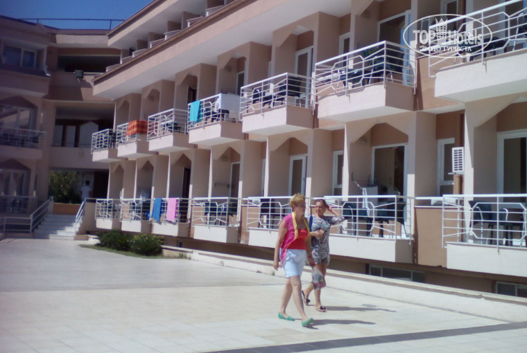 Отдыхали с мужем в сентябре,знали,куда ехали. Прочитала много отзывов перед поездкой. Всё оказалось не настолько ужасно,как многие описывают. Сначала дали корпус С, маленькая, ну очень бедненькая комнатка(хотя на фотках выглядит хорошо). Мы отказались. Сразу предложила договориться. Потом повели в корпус В,там не понравилось,что душ льется прямо на пол без всяких ограждений. На ресепшене запросил 30 долларов,сошлись на 10-ти за корпус А. Там более-менее все нормально. Бельё не новое,но сносное,телевизор маленький,но мы его не смотрели( на отдыхе не до телевизора). За шесть дней один раз поменяли постель и два раза убирались. Территория небольшая,но ухоженная. Питание скромное,но голодными не были. Зато море шикарное. До общественного пляжа минут семь идти,но там средняя галька. До пляжа отеля ехать минуты 4-5, идти минут 15,но там песок на пляже,заход в море очень мелкая галька. Лежаки,навесы от солнца бесплатно. Бар на пляже платно. Мы ехали за морем и солнцем. Этого получили сполна. Если к персоналу отеля обращаться уважительно и с улыбкой,они отвечают тем же.