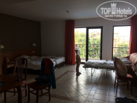 В аэропорту нас встретил бесплатно представитель от отеля с табличкой (трансфер из аэропорта бесплатный, а вот обратно уже надо самим добираться), сели в минивен и бесплатно быстро доехали до Золотых песков, водитель отлично говорил по-русски и рассказывал нам достопримечательности Варны. Приехали где-то в 14:15, заселили нас сразу же. Номер достался просто супер, с видом на море! Не двухкомнатный, но большой, как квартира-студия (он был в два раза больше, чем номера с видом на сад, к тому же у номеров с видом на сад ремонт хуже). Мебель абсолютно нормальная, только кровати раздельные и простыни маловаты для них. Кто-то писал, что грязное белье - так вот это неправда! Белье было чистое, полотенца тоже! Подушки небольшие, но удобные, одеяла тоже легкие и теплые. Для ребенка раскладной диванчик, вполне удобный. Телевизор плоский, русских каналов 3 или больше. На кухне есть электрический чайник, стаканы и кружки, но мы не пользовались. Холодильник тоже есть, и он бесплатный, сейф тоже бесплатный. Сантехника новая, фен есть. Уборка каждый день, влажная или нет - не знаю. Но кровати заправляли. Полотенца меняли (для этого нужно их бросить на пол). Белье меняли один раз за отпуск, ребенку меняли чаще - когда попросим. Нам могли бы тоже запросто поменять его, - достаточно попросить уборщицу, ну либо бросить простынь на пол. Уборщицы очень милые, вежливые. Делали фигурки из полотенец для дочки. Полотенца все с вышитым логотипом. В ванне мыло, гели, шампуни, бальзам, шапочка для душа, ушные палочки. В шкафу есть ложка для обуви, нитки с иглой, губка для обуви. Всё это с логотипом. Кто-то писал, что плитка на полу/стенах ванны дешевая, промышленная, - ну не знаю, на мой взгляд плитка нормальная... Балкон очень большой, вид прекрасный. Панорамное окно до пола. Вечером музыка в отеле не до поздна, анимация тоже кончается рано, шума от променада не слышно, поэтому никакого шума в номерах (о котором мы читали в других отзывах) не было!!! Пластиковые окна справляются с этой задачей хорошо! Один раз только компания одна в баре слушали свою музыку, танцевали, но нам никакого неудобства они не доставили, да и веселились они недолго. Еще я читала о том, что номера картонные и слышно соседей - это неправда! Вот честное слово - не было слышно ни соседей снизу, ни сверху, ни с боков! Только по утрам слышно через дверь, как люди ходят по коридору, но нам это тоже не мешало. К слову - был конец сезона, но отель был битком! При том, что многие соседние отели уже были или закрыты, или заселены мало. Расстроило нас только то, что из-за конца сезона детский аниматор остался только один, и говорила она исключительно на английском. (Фото номера прилагаю, прошу прощения за бардак). На балконе есть сушилка для белья. Кондиционер в номере есть, но мы не пользовались. И, что немаловажно, ВАЙ-ФАЙ на всей территории бесплатный! В номере ловит тоже хорошо, смотрели ю-туб на телефоне без проблем.