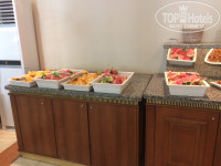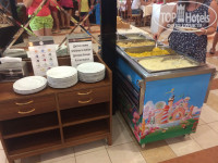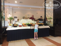 ПИТАНИЕ: Нам всё понравилось. Завтраки однообразные, но это везде так, так как питание на завтраках в мире у людей не шибко разнообразное. А на обед и ужин меню примерно похожее, но по-разному приготовлено. Много салатов (только заправки какие-то кисловатые), много овощей, различных нарезок колбас (колбасы вкусные, не как в арабских странах), сыров (вкусные), оливок, соленой рыбы и прочее. Много мясных блюд, мясо мягкое, буквально тает. Бывало, конечно, что блюда не удались им, но это редко. Курица, рыба. Один раз было даже блюдо из морепродуктов, там были осьминожки малюсенькие, мидии, кальмары. Дважды подавали целого барашка, повар в тарелки наклыдывал. Были роллы. Супы куриные, овощные, мясные, не перетертые, а достаточно вкусные и похожие на домашние; я никогда в отелях супы не ела, а в Болгарии ела с удовольствием их. На завтраки оладушки (которые можно смазать вкусной нутеллой) и омлет, стоять в очереди совсем чуть-чуть. ОЧЕНЬ много различных фруктов. Йогурты. Компоты с большим количеством ягод. Соки похожи на юпи, но вполне нормальные. Большое обилие кофейных аппаратов с различным кофе и какао, что меня очень-очень радовало. Много сладостей, но для меня они были приторными, поэтому я ела только некоторые из них. На завтраки, кстати, очень вкусные булочки. Много разного хлеба, есть тостер. Пиво нормальное, но безалкогольное. Коктейли я не пила, вино тоже не пробовала. Есть аппараты с типа "замороженным" соком, розовый очень вкусный. Всегда в наличии печеньки разные в лобби - идешь в номер, да захватишь печенюшку и нальешь кофейку)) Днем всегда есть чем перекусить у бассейна - картофель фри, чипсы натуральные, пицца, колбаски на гриле, овощи, бургеры, вареная кукуруза, нагетсы. Детское меню есть, но это в основном тоже самое, что и у взрослых лежит. Каши были. Много разных сухих завтраков с молоком. В ресторане один раз на ужин были музыканты, здорово. Места всем хватало. Иногда мы кушали у бара на воздухе. Официанты говорят на русском, они похоже из Украины. Никакой грязной посуды я не видела! И столы официанты старались убирать после ушедших гостей быстро, но отель битком, поэтому не всё так быстро, как посетителям того хочется, но всё равно официанты старались и были очень приветливы. Когда ресторан закрывался, то с уличных окон было видно, что убираются там тщательно, даже специальными средствами мыли диваны кожаные и замшевые. Один раз мы бесплатно ходили в ресторан а-ля-карт, записываться надо у управляющего в холле отеля. Каждый день огромное количество мороженого, дочка была просто в восторге, да и мы, взрослые, тоже. Бери сколько хочешь. Кстати, в номера мы спокойно брали еду из ресторана, и никто нам не запрещал её выносить, хотя на табличке нарисовано, что это запрещено. В принципе, в отеле и про курение везде таблички, что нельзя, но все курят.
