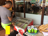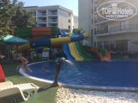 РАСПОЛОЖЕНИЕ ОТЕЛЯ, ТЕРРИТОРИЯ: Находится в самом центре, полно рядом кафе и магазинчиков, до всего рукой подать, до моря очень близко, лестница совсем маленькая. Променад нормальный, но постоянно ездят по нему паровозики, да и народу полно, хоть и конец сезона. В ларьках один али-экспресс, в тридОрога. Питание в кафе очень дорогое (мы не питались, нужды не было), не представляю, сколько денег тратят на питание те, кто едет на одни завтраки. Колесо обозрения стоит на русские деньги по нынешнему курсу столько же, сколько и у нас во Владимире, хотя даже дешевле - 200 взрослый (5 лев), 120 детский (3 лев). Покататься на пони ребенку тоже такая же цена, как и у нас - 200 руб. (5 лев). Еще катали ребенка на машинках. Ездили на паровозике (но не по променаду, т.к. мы там итак пешком ходили, а в другую сторону - в гору), стоит 5 лев и взрослым, и детям. Посмотрели по сторонам на отели,- одна фигня, так что наш отель просто чудо, и в нем есть много того, чего нет в других отелях. Были рядом, конечно, супер отели, такие как Гранд Мелия Эрмитаж, но они и стоят соответственно)) Деньги можно менять на любом шагу, курс везде одинаковый. Каждый день в 22:00 салют у немецкого бара у колеса обозрения. Пиво, если интересно, самое дешевое в супермаркетах Бест Прайс (Лиди), можно купить банку за 35 рублей. В общем-то, цена на него как и в России. Но запасайтесь сигаретами в России (как мы и сделали), потому что в Болгарии самая дешевая пачка сигарет 200 рублей стоит (5 лев). Территория у отеля маленькая, но нам это не мешало, да и зачем там большая территория? Там итак есть где гулять, это вам не о.Джерба, где большая территория у отеля необходима, т.к. гулять больше негде)) На территории детские качельки, горка, батут (не совсем понравился, слабо надут и стоИт в опасном месте, но всё равно в нём аншлаг))) Есть детские шевелящиеся паровозик и еще что-то, там детки сидят с удовольствием, облепляют их со всех сторон, нажимают кнопку и качаются целыми компаниями. Есть столик для настольного тенниса. Детям в отеле весело! Горки нормальные, внизу весь день спасатели, и один спасатель иногда сидит вверху, на самой горке. Детские горки тоже супер, дочка из бассейна не вылезала и сейчас очень грустит по нему. Удобно лежать на лежаке у детского бассейна и наблюдать за ребенком в нем. Есть фонтанчики-два дельфина и креветка. Хочу отдельно отметить на счет чистоты на территории, кто-то писал, что стаканчики пустые валяются, кое-где отходит зеленое противоскользящее покрытие. Так вот-стаканы я видела во всех странах. А уж тем более в Болгарии частенько ветер, поэтому и стаканы улетают. Их и тарелочки старались убирать, но, извините, за всем не уследить, тем более когда в отеле аншлаг. Покрытие старались поправлять, но люди и детки периодически всё равно задирали. По-моему - это всё такие мелочи, которые никакого негатива лично нам не принесли. По вечерам обслуживающий персонал отдыхает после 10, поэтому на столиках скапливались стаканчики, но с утра к завтраку всё уже было убрано. Видно, что в 2017 году в отеле был ремонт, всё очень приличное. И еще люди, наверное, этого не видели, а мне вот с балкона прекрасно было видно - по утрам всю территорию тщательно убирали; пылесосили зеленое покрытие; МЫЛИ плитку (КАРЛ, я такого нигде не видела. Молодцы!) везде на территории отеля; убирали сачком листья из бассейна и пылесосили толи мыли по