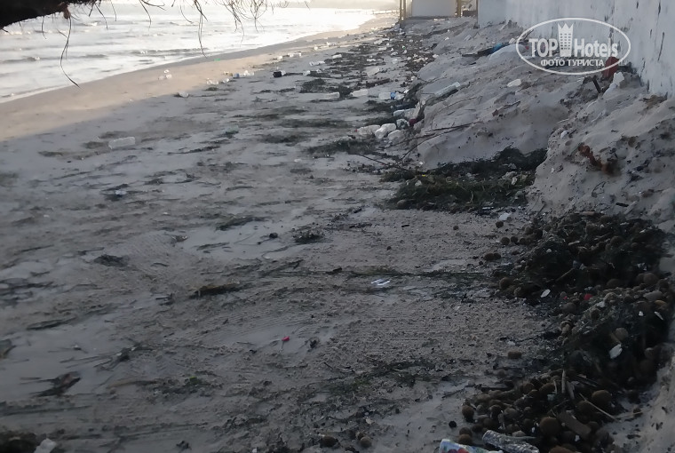 пляж убирается 20 метров в разные стороны от входа, остальной мусор при мне один раз вместе с песком сгребали в сторону. Рядом с отелем заброшенные территории на которых мусор горами и соответственно запах.