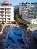Минус отеля- отсутствие своего пляжа, но можно пойти на бесплатный общественный, расположиться на любом, купив напиток, или поехать на маршрутке с оранжевой полосой в Ичмелер. По городу ходит маршрутка с тремя полосами оранжевого, синего и зеленого цвета, стоит 3.25 лиры, ездили на ней в центр, к фонтанам и крепости. На фонтаны надо посмотреть обязательно, крепость тоже интересная, и с нее замечательный вид на город и набережную.