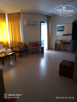Прилетели без задержек, заселили нас в 12:00 в 5 корпус, номер 506 (семейный, 3-х комнатный, 2 балкона). Сначала предложили тоже семейный, но самый дальний корпус, возле бассейна с горкой, он нам не понравился и нам предложили другой. Номер хороший, единственное, что плохо текла вода из крана.