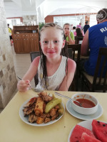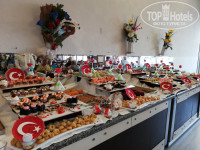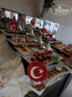 Питание, нам понравилось...оно было разнообразное, был вкуснейший красный борщ (очень непривычно для Турции), но вкусно, ребенок был доволен. Супы любим... мясо, рыба, запечённые овощи, фрукты (арбузы, дыни, сливы, персики, абрикосы)...Выпивка как и везде ром, виски, раки, водка, пиво, вино все из бутылок, вода питьевая есть и много. На пляже только пиво и вино... Мороженное 2 раза в день и очень вкусное, лепёшки просто БОБМА с 11.00 до 16.00 , СУПЕР отдельное СПАСИБО отелю, айран Питание 5****. Очередей за питанием не было, отель забит был.