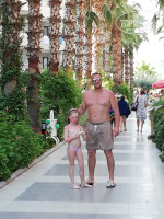 Здравствуйте, отдыхали в отеле в июле с мужем и дочерью (7 лет). Летали от Аnexa, прилетели в аэропорт Газипаша, что очень нам понравилось, так как добрались за минут 40. Заселили нас быстро около 11.00, браслеты сразу, отправили на завтрак. Номер на бассейн угловой в старом корпусе, номер чистый, но старенький, всё работало, убирались каждый день, постель пару раз, депозит за полотенце 5$, взяли два. Замена 1$ (всё как и указано в описании), мы об этом знали.
