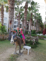 Море, заход сложный, тяжелый, камни большие, но есть место где можно зайти... Море показалось очень солёным, дочь не охотно купалась в море... О камнях нас предупредили..Два бассейна одна горка. Анимация детская хорошая, дочери понравилось, мы не ходили, так как в Турции были много раз и практически всё видели. Познакомились с семьёй из Ханты-Мансийска и очень весело, незабываемо провели время в этом отеле. Персонал хороший, отзывались на просьбы и решали их. Русских туристов основная масса, детям было очень весело. Территория очень красивая, зелени много, особенно впечатлило дерево..