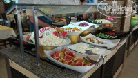 По питанию. Голодные мы не оставались. На завтрак брали всем разное. Сын кушал рисовую кашку с медом или др. джемом, вареное яйцо. Дочка вечно в еде копается, поэтому только ей было сложно угодить, но пару раз ела глазунью, оладьи (за наш отдых три раза их давали) с джемом, булочку. Мы ели еще салаты, йогурты. Из напитков: чай, кофе, вода и сок юппи.