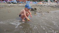 Боялась входа в море, собиралась всем покупать кораллки, но хорошо, не купила. И мы и дети без проблем ходили и по камушкам и по песочку босиком. Море классное! Из-за волн заходить не очень удобно, но быстро приспособились, просто боком к волне поворачиваешься и она уже тебя не сбивает с ног. Первый день заходили напротив спасательной вышки, на следующий день попробовали правее напротив площадки и места, где мороженое выдают - там больше понравилось.