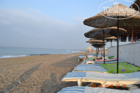 пляж: каменистый...вход в море намывает за ночь, что очень больно заходить...не комфортно...в кораллках красота)))))...в сентябре волны...часто флаги, что купаться опасно или запрещено....ну нашему брату , это только в радость порезвиться на волнах))))))...лежаков вроде всем хватало, кому надо было прям у моря, так на полотенцах лежали)))))....купаться нужно левее от бара....правее там какие то подводные скалы..можно пораниться....ну мы и по ним полазили конечно))))) у нас же как? что опасно и запретно, значит , это для нас))))))