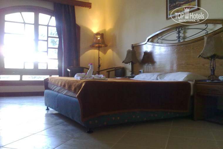 Отель супер! Мне все понравилось. Тем более, что за тур на неделю отдала смешные деньги - 11,5 т.р. Отель новый, все чистенько, персонал приветливый и неназойливый. При заселении забыла дать 10$ на ресепшн и мне предоставили номер 104 с видом на белоснежный забор и зелень на первом этаже. Сначала я расстроилась, но потом вспомнила, что в номере мне все равно только спать, зато можно переодеваться и при этом не закрывать шторы, благо там никто не ходил. Номер мне дали большой с двуспальной кроватью, большим шкафом, холодильником, телевизором (только один русский канал), кондиционер (работает не очень шумно, и на холод, и на обогрев). В номере была ванная (полноценная), раковина и туалет. Горячая вода в избытке. Живности в номере нет. Окно лучше не открывать, вечером налетают комары, так что берите с собой фумикатор на всякий пожарный. Неполадки конечно были, такие как неработающий пульт от ТВ, отсутствие пробки в ванной, еще в постедний день дверь от ванной комнаты сама собой закрылась изнутри)))). Но все они были устранены в 5 минут с доброжелательной улыбкой и извинениями. Уборка конечно поверхностная, но я и не сорила. Кстати в номере есть сейф на кодовом замке, что очень удобно. У меня ничего не пропало.