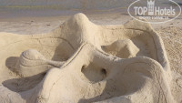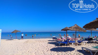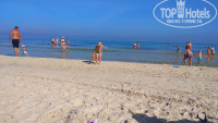 У нас была отличная погода, пару раз был дождь и ветер. Море чистое! заход в море плавный, удобно деткам купаться. Песчаный пляж, правда чуть грязноват. дежурит спасатель и охрана. Плаж всегда чистят,если нанесет водоросли. Есть разные бананы, парашют, ватрушки. Ходят продавцы фруктов, и прочей туниской утвари, и катают на верблюдах и лошадях.