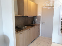 НОМЕР 6, однокомнатный больше 20 квадратов, большой на первом этаже с балконом, Studio Apartment у входа мини кухня с двукомфорной электроплитой, электрочайник, кастрюля, сковородка, досточка, 2 чашки, блюдца, тарелки трёх размеров, ножи, ложки и вилки. есть вытяжка, мойка. Вобщем при желании можно готовить кушать. Мы варили креветки разок и разок суп.